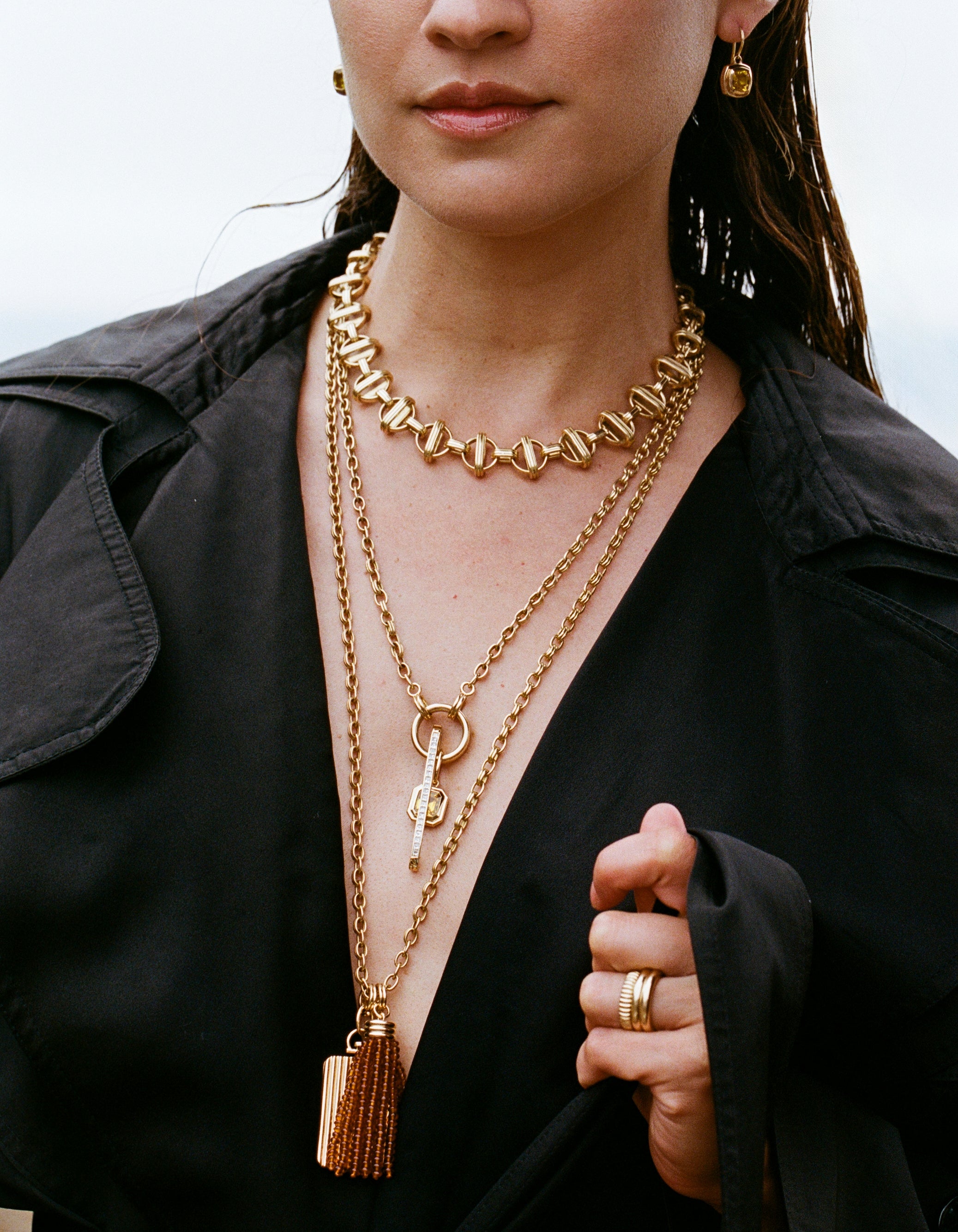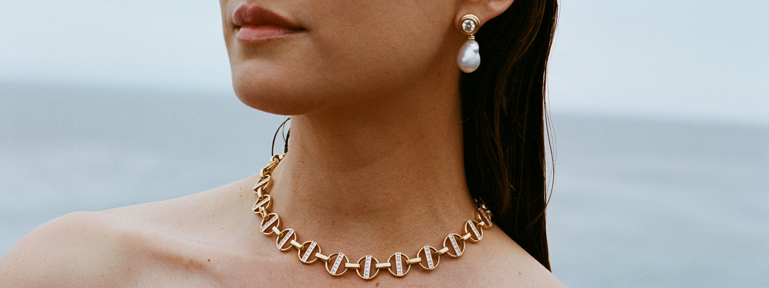 Ranging from hand-linked chains, diamond rings and studs, semi-precious stone and textured gold photo lockets, precious and semi-precious stone tassels, Tahitian and South Sea pearls, and our refined, everyday earrings and studs.