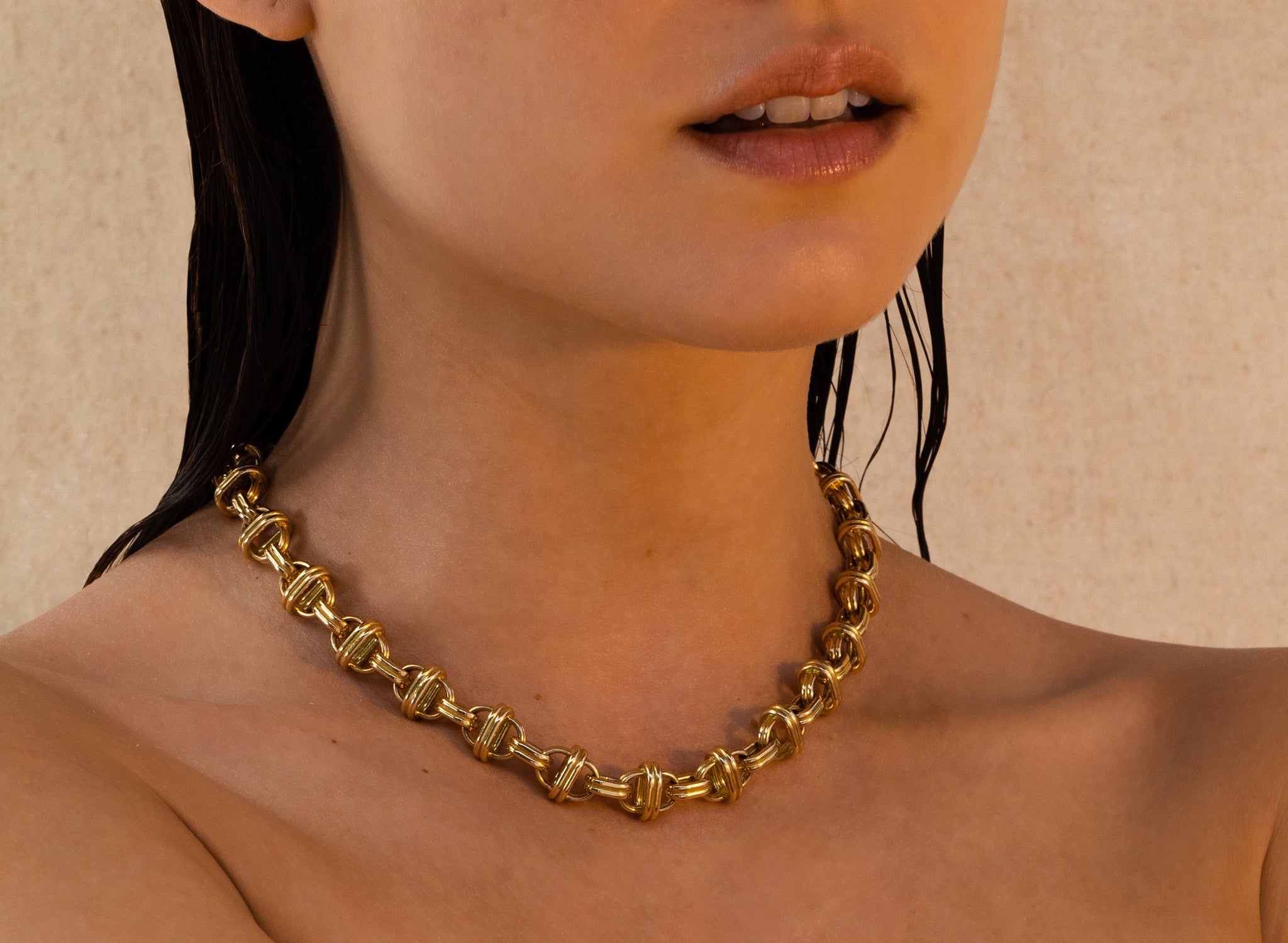 We're best known for our signature warm gold—a proprietary alloy developed over nearly a year of meticulous refinement. By steadfastly fine-tuning the precise balance of metals, we arrived at a certified 18k Yellow-gold hue that feels both distinctive and timeless. In partnership with the SRSP (Signet Responsible Sourcing Protocol), our gold is certified and independently audited through a sustainable refining process that separates alloys and reduces them to pure gold. Each handcrafted piece incorporates both recycled and newly sourced gold.