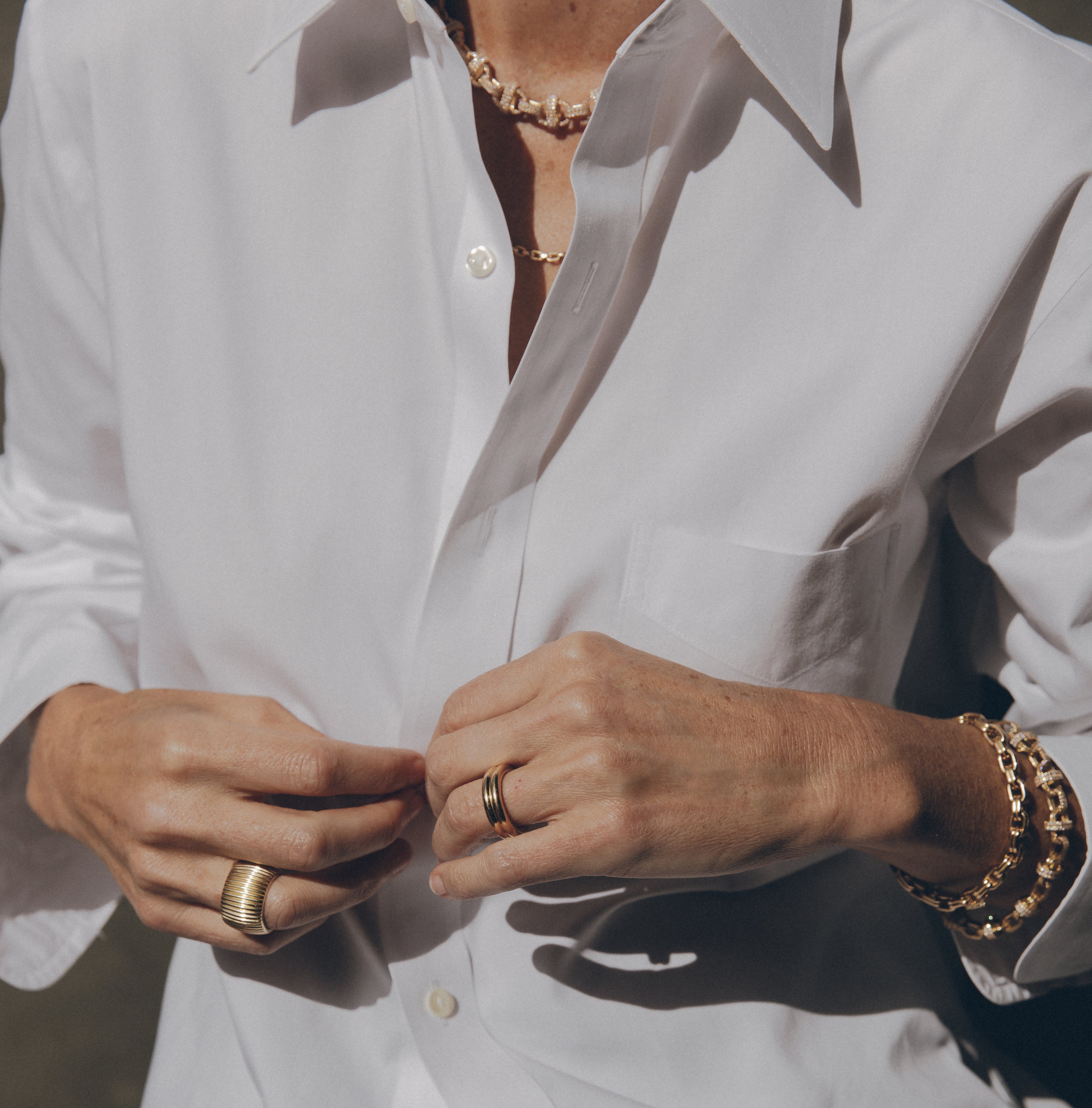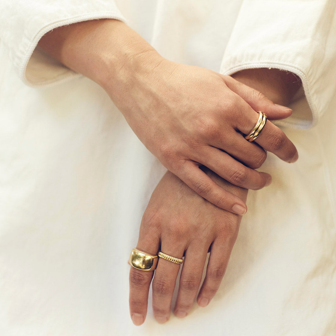 Our Heavy Gold Rings are crafted in solid 18k gold using our proprietary warm alloy. Each piece has a substantial feel and refined simplicity that speaks to its craftsmanship. Whether in the clean, architectural lines of our Double Band Rings or the textured depth of our Barre Rings, every design is shaped by hand in Los Angeles with the intention of becoming a modern heirloom. Finished in either a mirror-like high polish or our signature textured surface, these rings are designed to anchor a collection or stand powerfully on their own. They are not just made to be worn, but to be remembered.