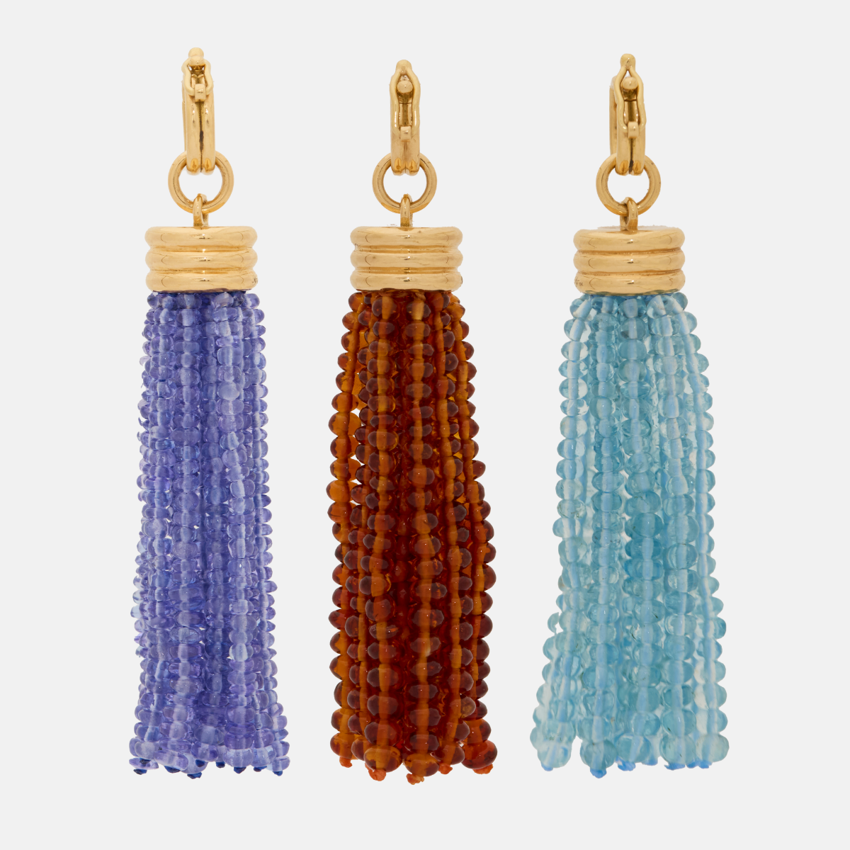 Our Tassel Collection is a modern interpretation of timeless glamour. Each piece is crafted from hand-cut precious and semi-precious stones, shaped into soft, disc-like forms that catch the light with subtle movement. Designed to be worn as earrings, as a pendant, or suspended from our chains, the tassels evoke effortless elegance.